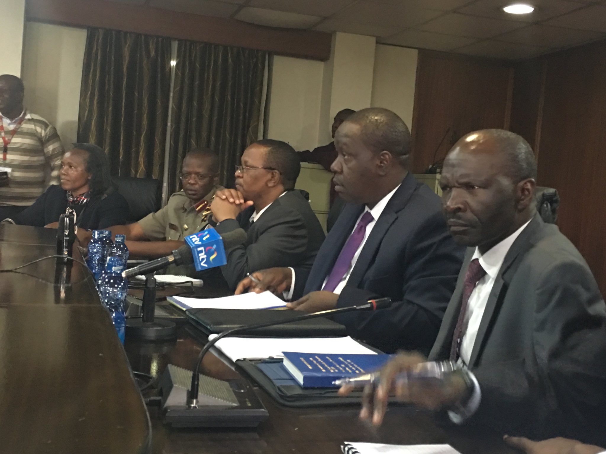 Interior CS Dr. Fred Matiang’i before parliamentary committee on national security accompanied by CAS ole Ntutu, PS Kibicho and PS Kihalangwa to give a report on Miguna Miguna issue. pic.twitter.com/9BVb0vrTu6— Mwenda Njoka (@mwendanjoka) April 3, 2018